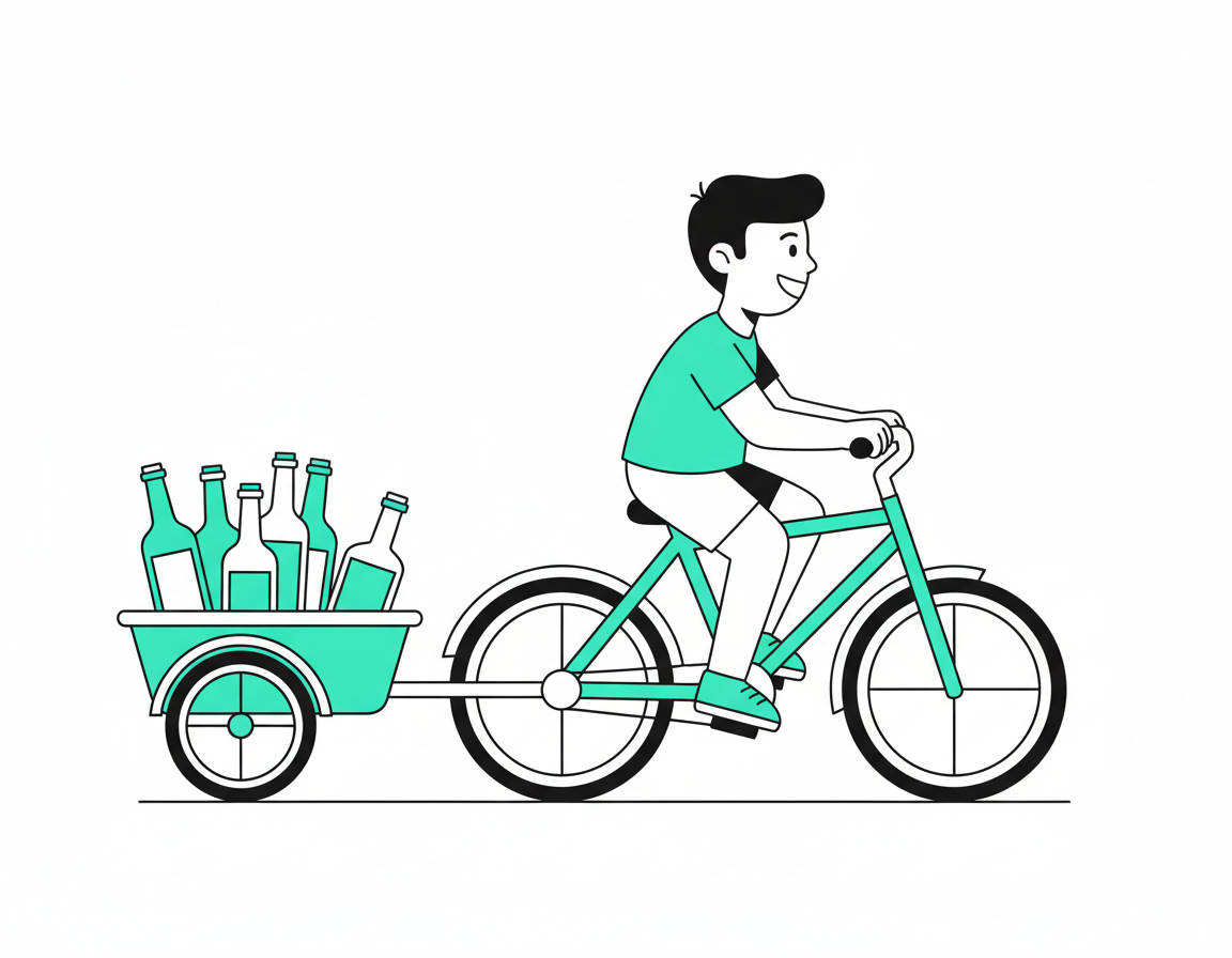 RadlGlas ist ein Abholservice für Altglas und Pfand. Wir holen deine leeren Flaschen und Gläser direkt an deiner Haustür ab, damit du nichts mehr schleppen musst.